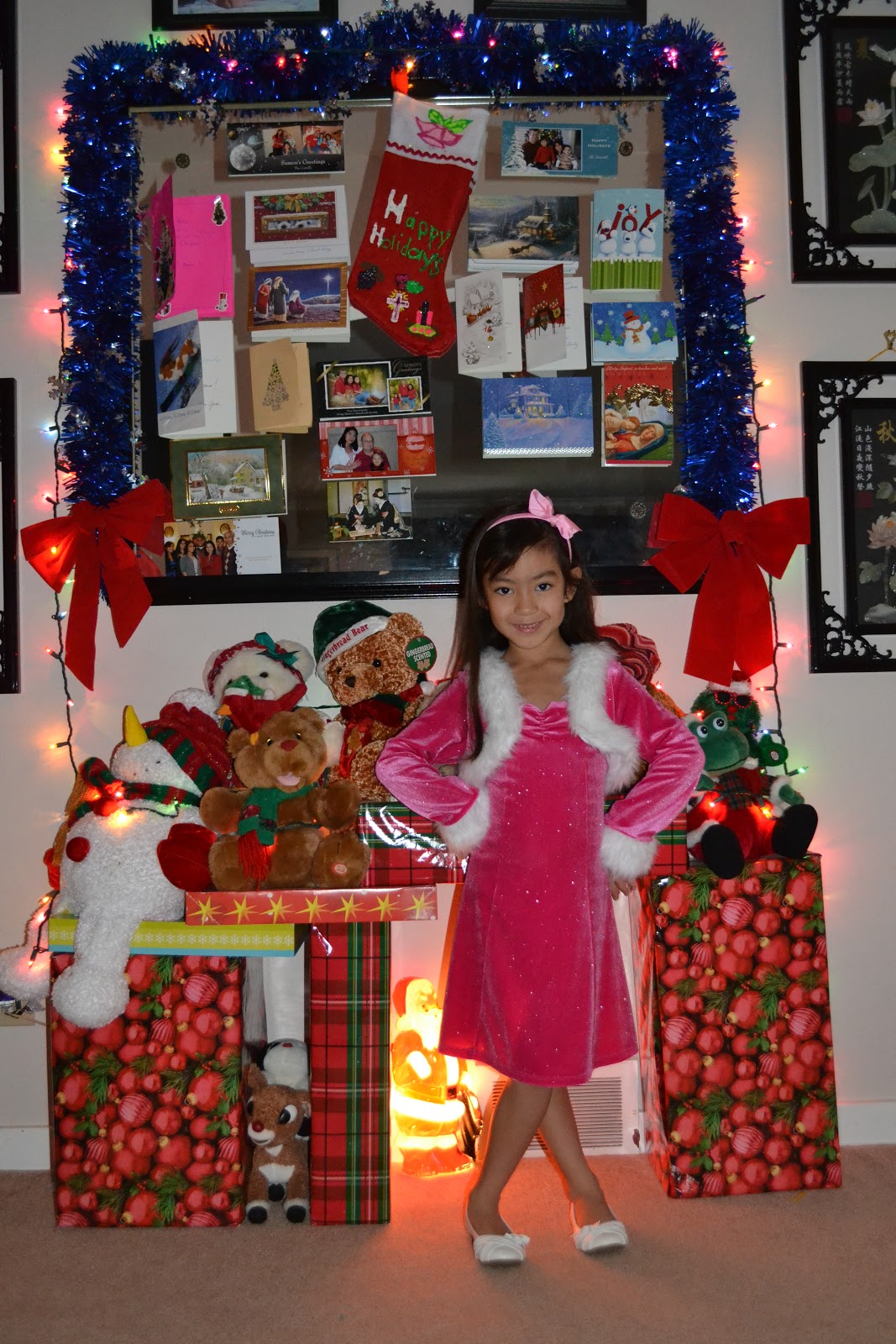 9. You are so pretty, Ms.Burrito and your pink dress is gorgeous. How nice of your parents to let you open presents before Christmas. That's pretty cool! Hope you all enjoy New Year too....Christine